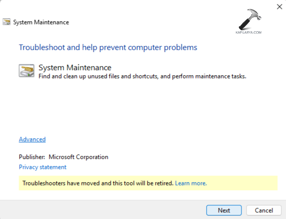 Ezenkívül a felhasználók a rendszerkarbantartási hibaelhárítót is futtathatják a rendszerrel kapcsolatos problémák kijavításához és a probléma megoldásához. Ehhez kövesse az alábbi lépéseket.
