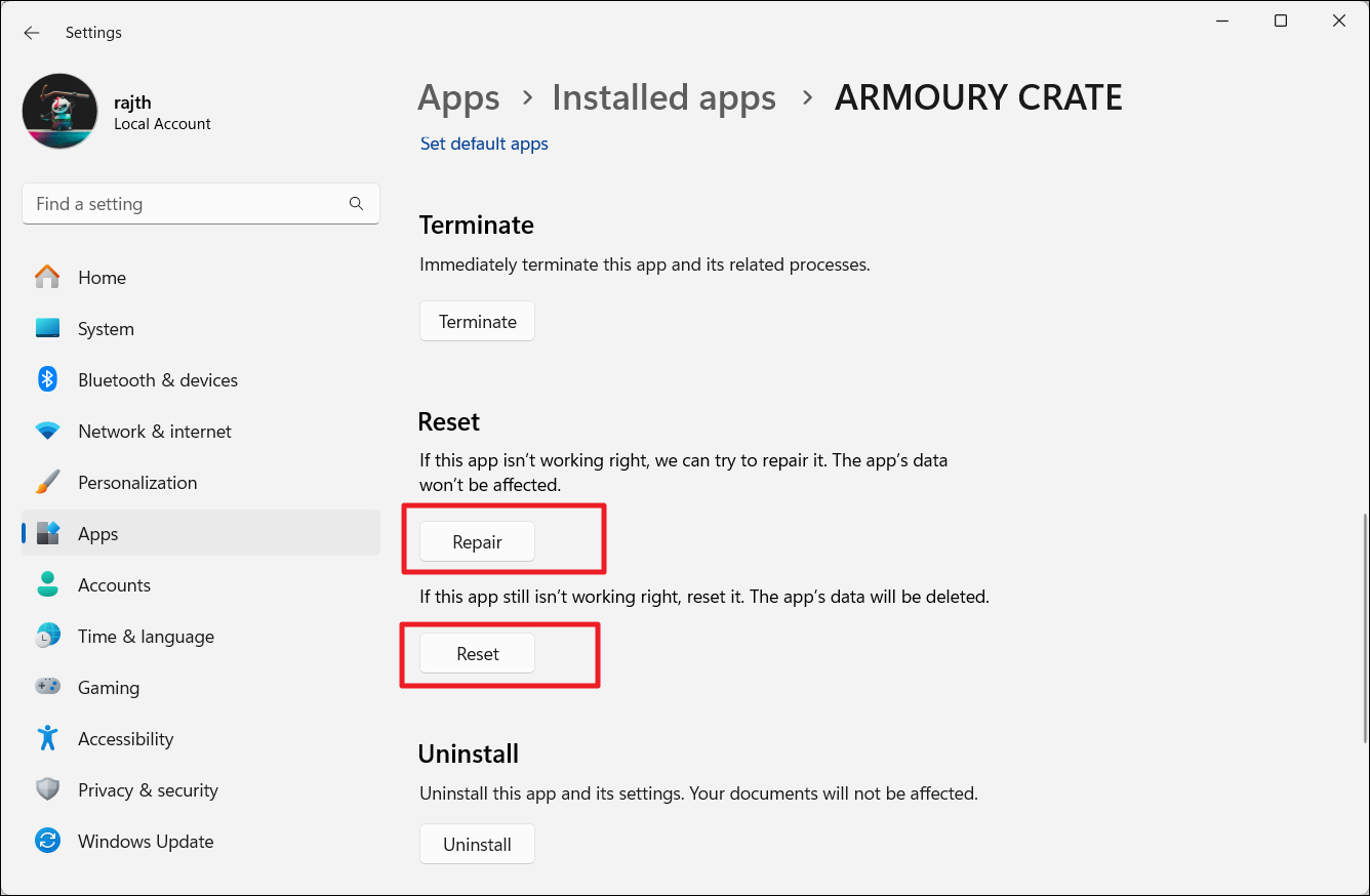 Ha egy adott alkalmazást vagy játékot használva kapja meg a hibát, akkor valószínűleg a korrupt fájlok okozzák. Megpróbálhatja javítani vagy visszaállítani az adott alkalmazást vagy játékot, hogy megnézze, megoldja -e a problémát.