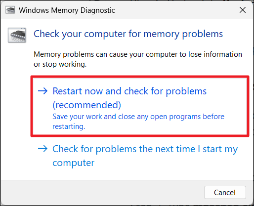 4. megoldás: Futtasson egy memória -diagnosztikai ellenőrzést