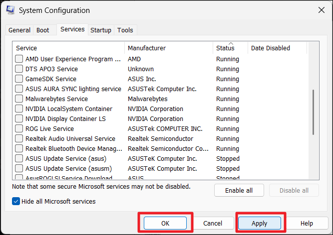 6. Visszatérve a rendszerkonfigurációba, kattintson a “Alkalmaz"És aztán"RENDBEN„.