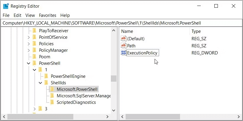HKEY_LOCAL_MACHINESOFTWAREMicrosoftPowerShell1ShellIdsMicrosoft.PowerShell