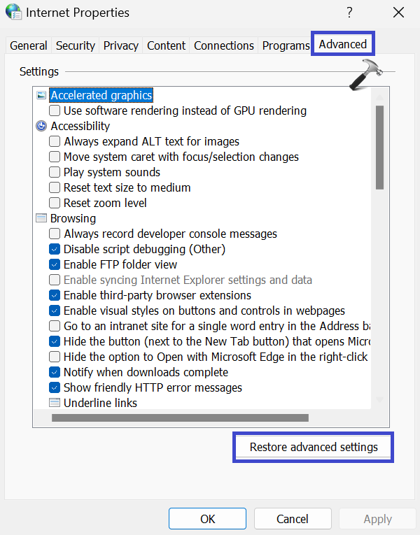 1. javítás: Az Internet Explorer beállításainak visszaállítása