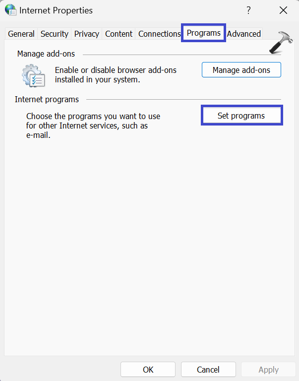 AProgramfül, kattintson a “Beállítani a programokat„.
