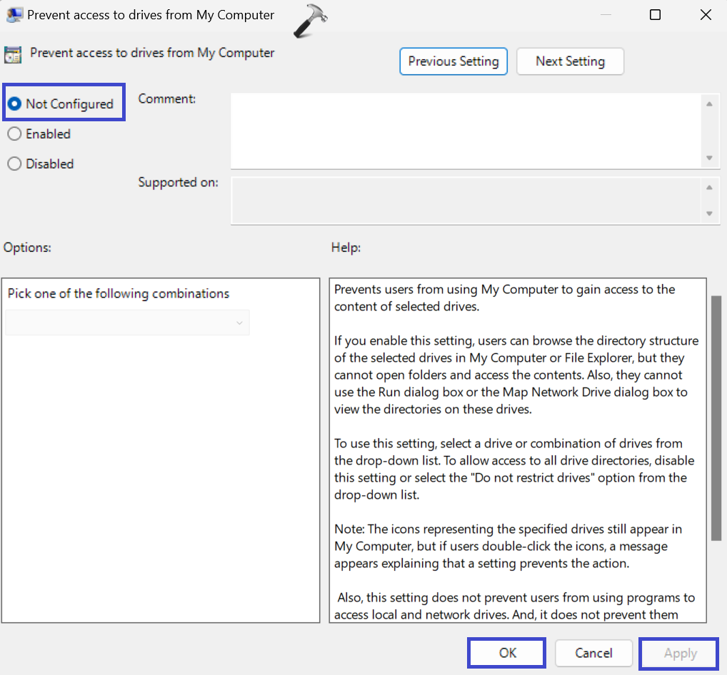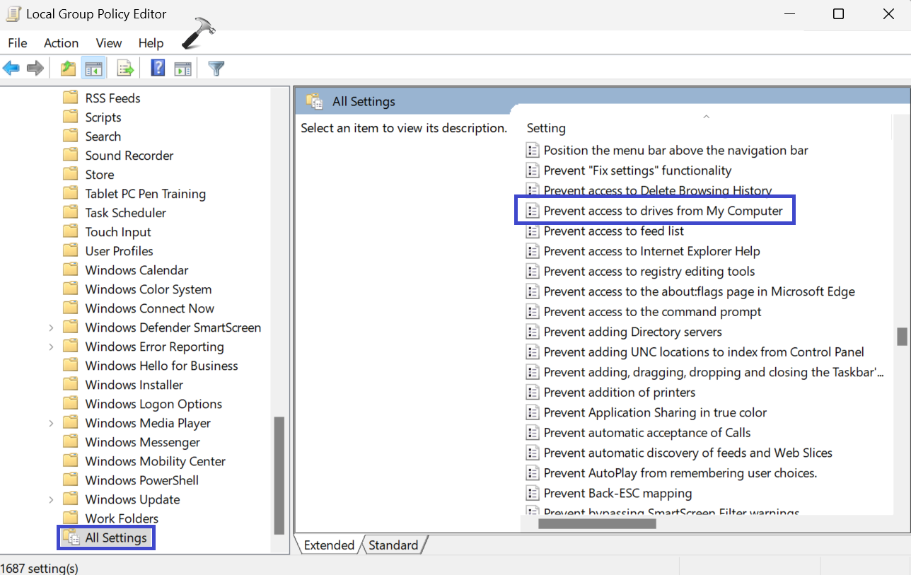 3. Kattintson duplán a „Megakadályozza a számítógépem meghajtókhoz való hozzáférést a számítógépemről„.