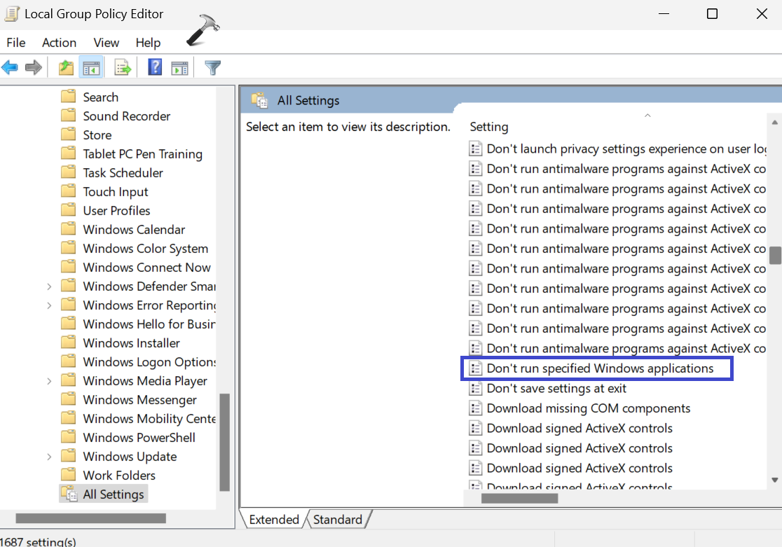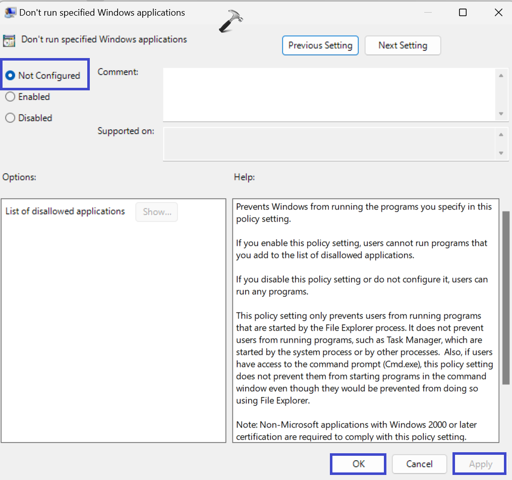 5. Most kattintson duplán a „Ne futtassa a megadott Windows alkalmazásokat”Opció.