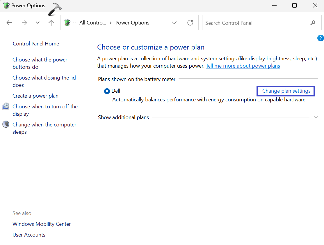 3. Ezután kattintson a “A tervbeállítások módosítása„.