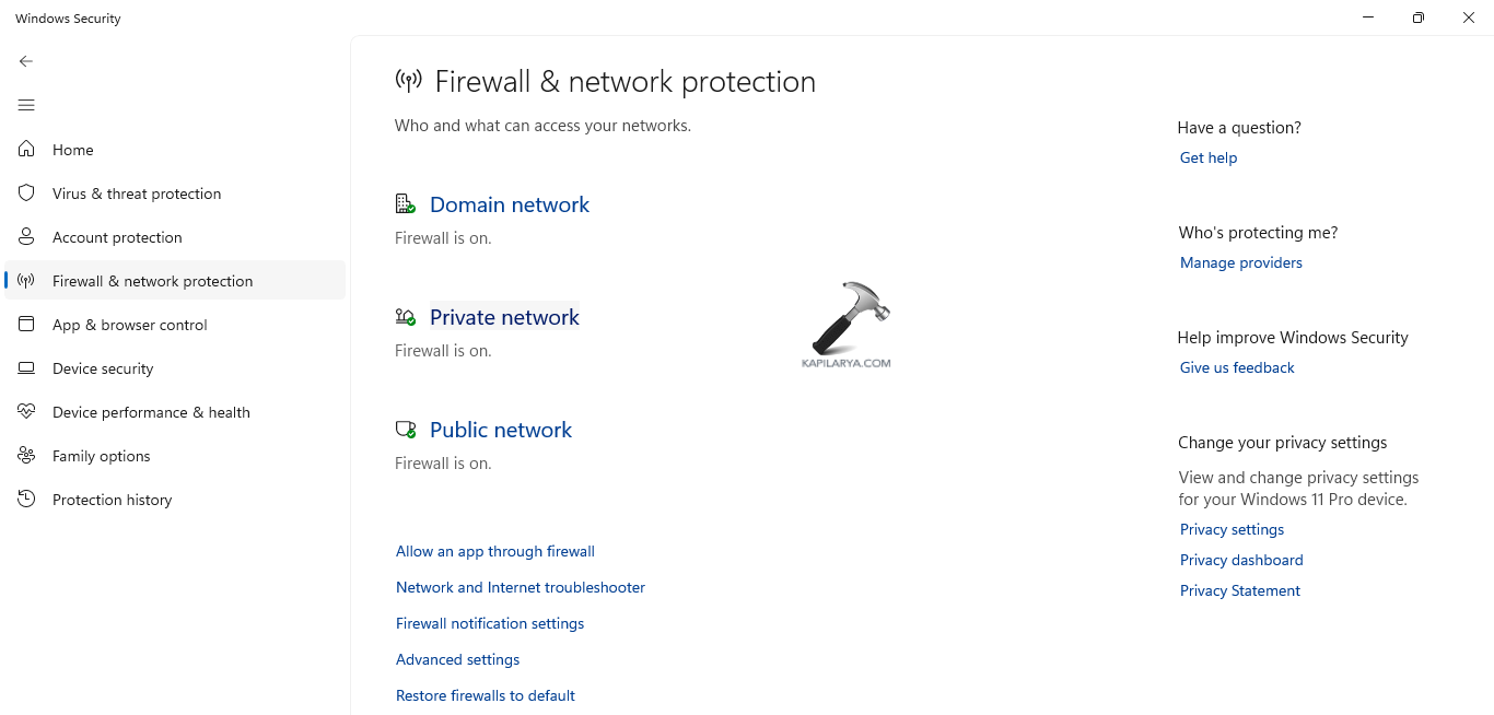 1. lépés-Ismét nyissa meg a Windows Security -t, és lépjen a Firewall & Network Protection oldalra.