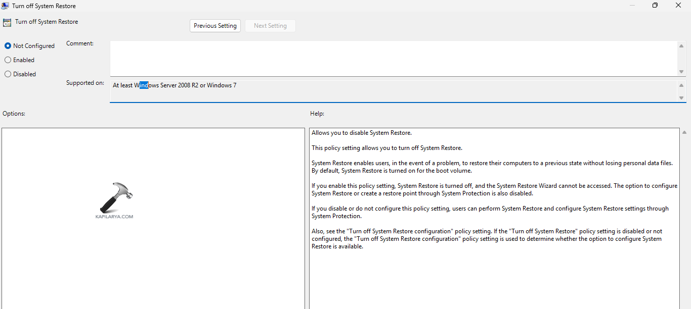 A helytelen rendszer -visszaállítási beállítások egy másik oka lehet annak a problémának, hogy a Volume Shadow Copy szolgáltatás nem működik. Ezért a rendszer visszaállításának konfigurálása az alábbi lépések segítségével elősegítheti a probléma megoldását
