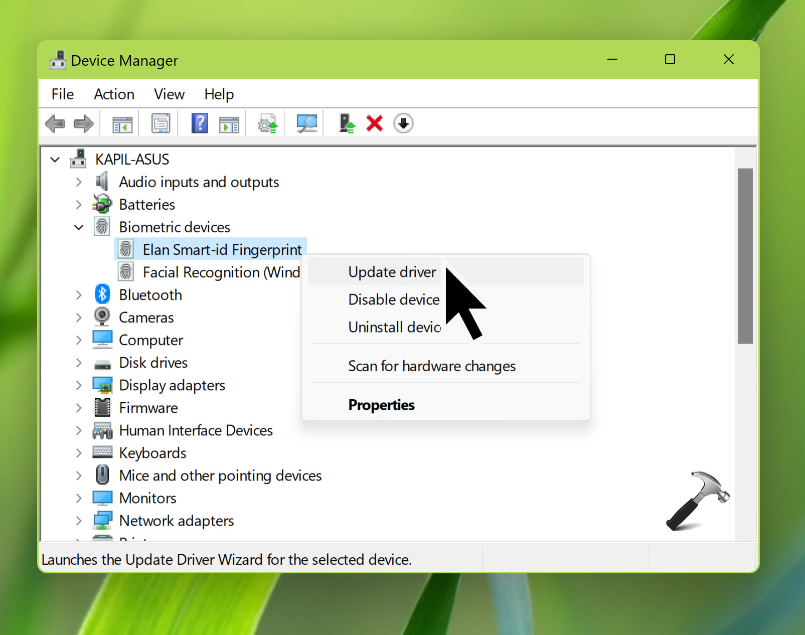 3.Ezután nézze meg, hogy megtalálja-e a biometrikus eszközöket, és bővítheti-e azt. Ha létezik ujjlenyomat-olvasóval ellátott rejtett eszköz, kattintson rá jobb gombbal, és válassza kiFrissítse az illesztőprogramot.