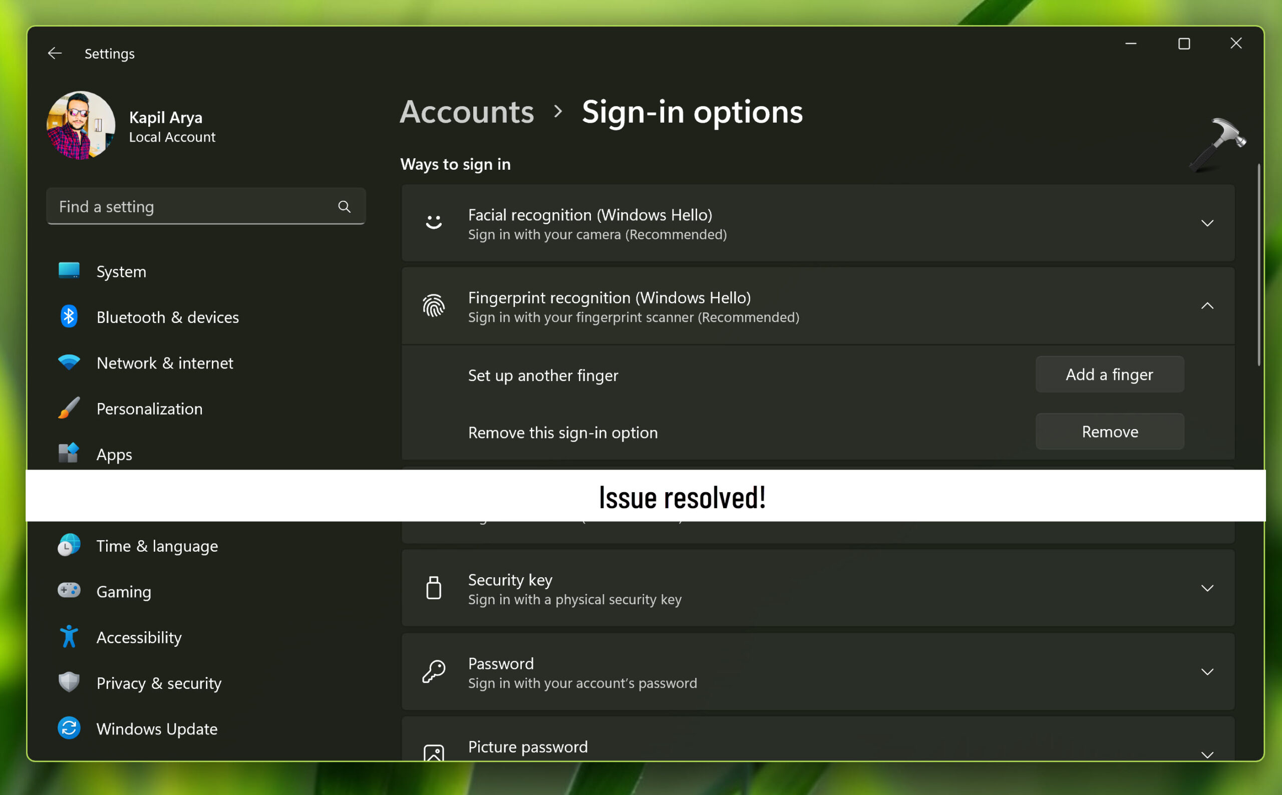 Nem találtunk a Windows Hello ujjlenyomat-hibával kompatibilis ujjlenyomat-szkennert a Windows 11 rendszeren.