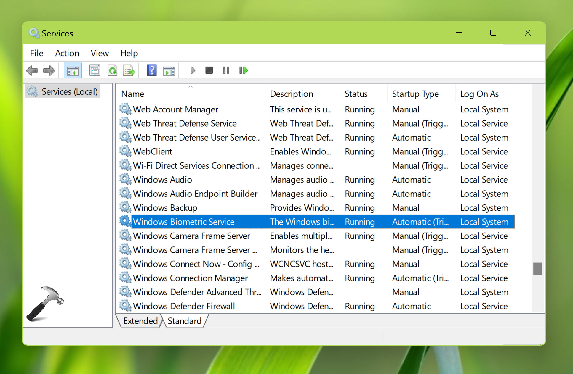 2.A Szolgáltatások ablakban görgessen lefelé, és keresse meg aWindows biometrikus szolgáltatás.