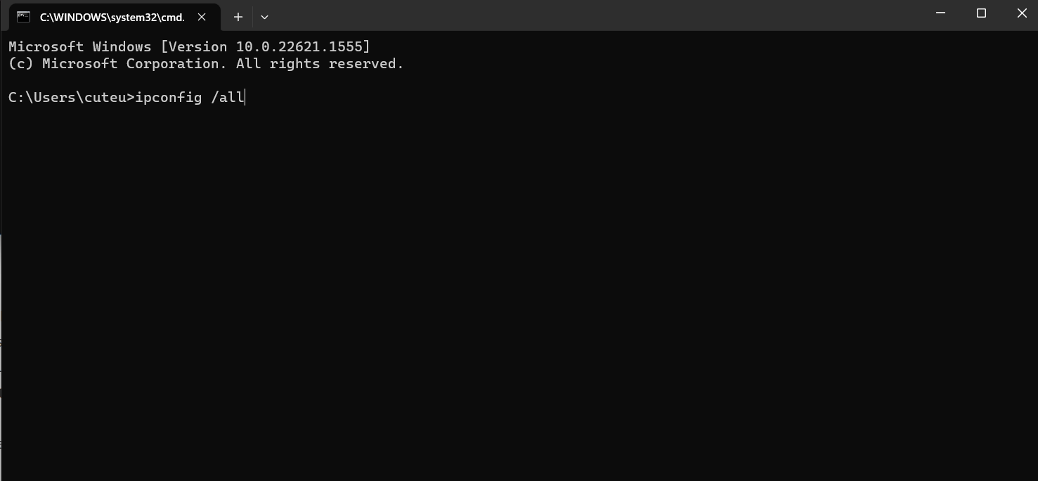 5. Nyissa meg a parancssort, és adja meg az ipconfig /all parancsot