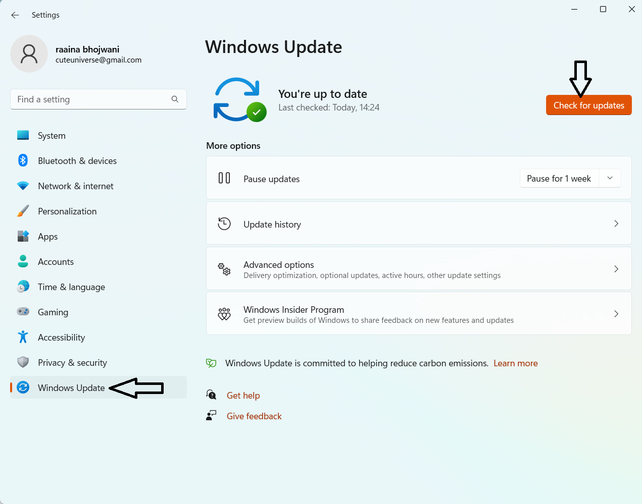 Lépjen a Start menü> Beállítások> Windows frissítések> Frissítések ellenőrzéséhez.