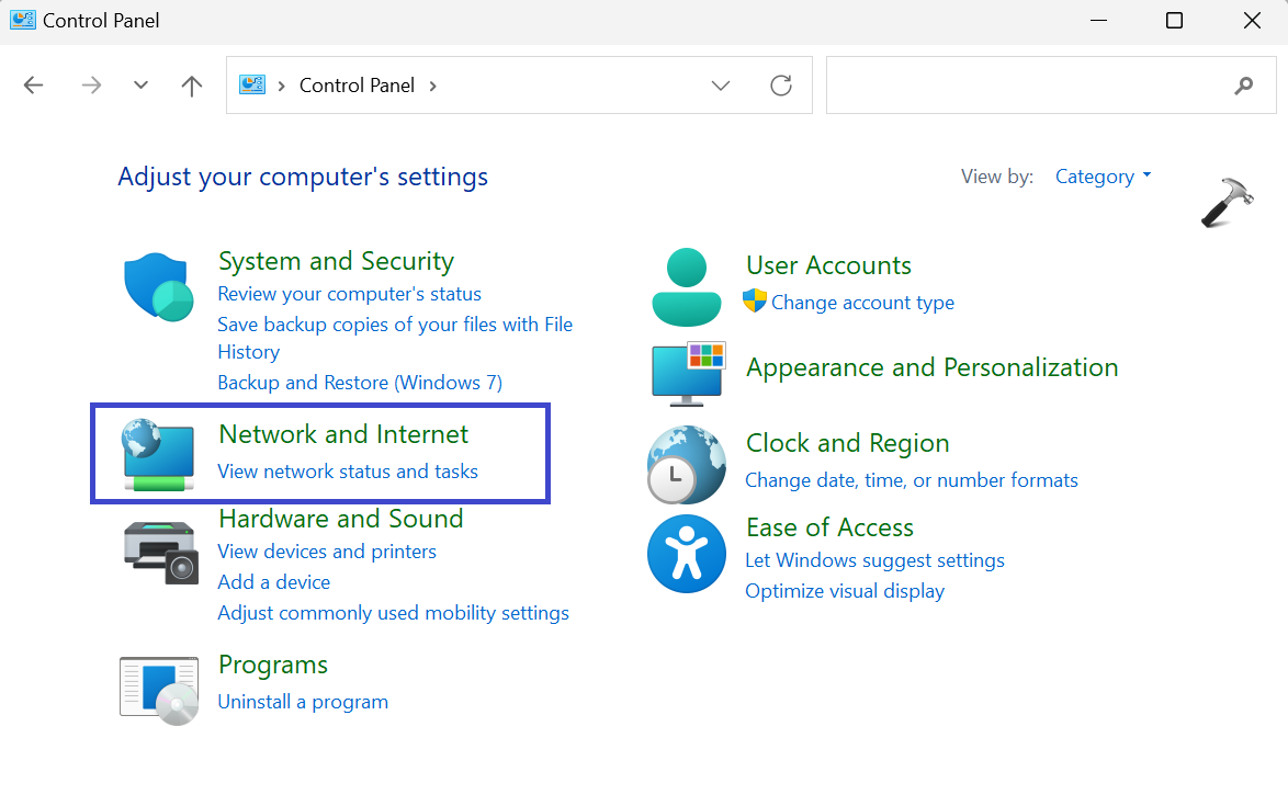 3: Kattintson a “Fut"A" mellett "Hálózat és internet„.