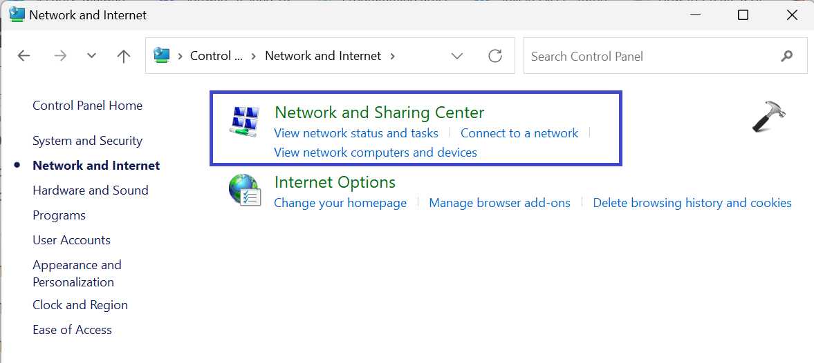3: Akkor kattintson a “Hálózat és megosztási központ„.