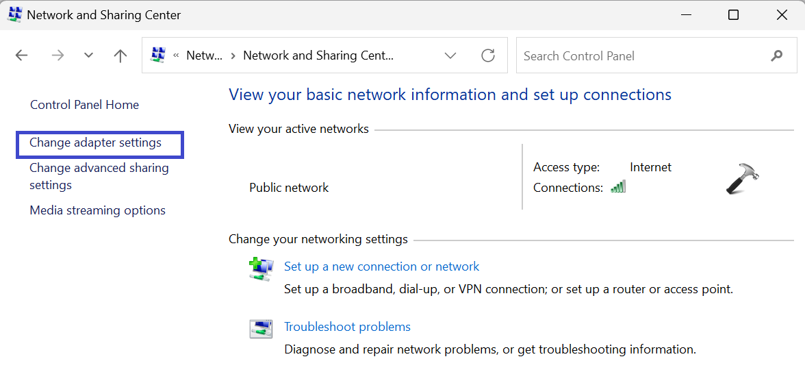 4: A bal oldali panelen kattintson a „Az adapter beállításainak módosítása„.