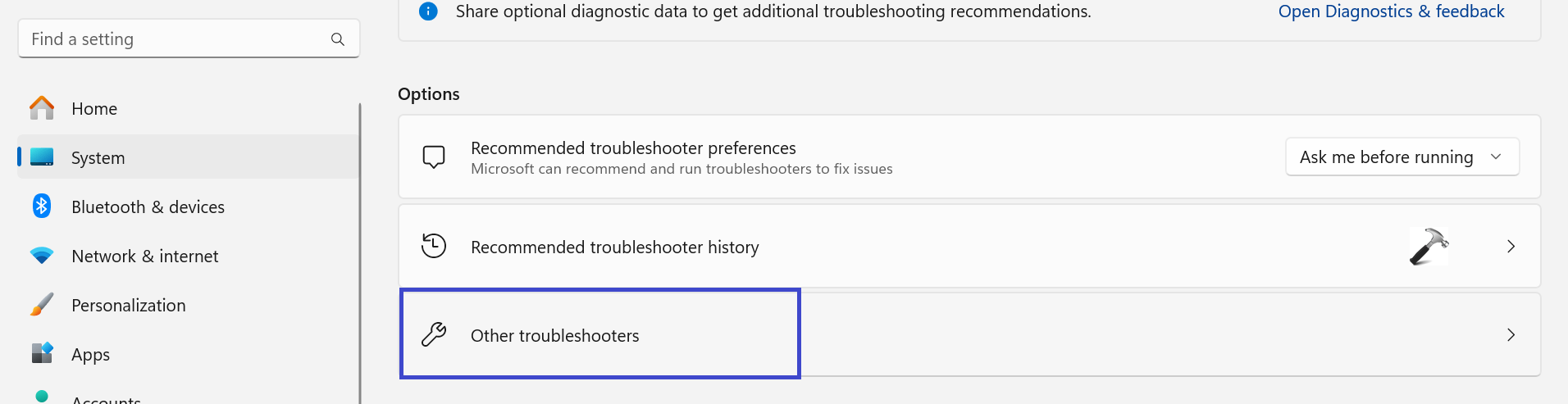 2: Most kattintson a “Egyéb hibaelhárítók„.