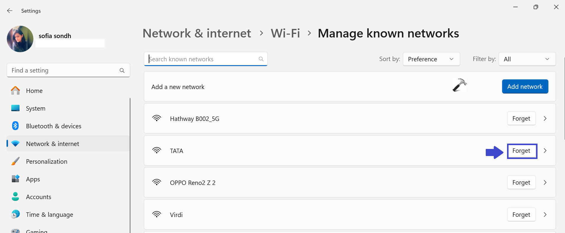 Ha problémái vannak azzal, hogy a Windows 11 nem talál olyan Wi-Fi hálózatot, amelyhez csatlakoztatva volt, akkor megpróbálhatja elfelejteni ezt a hálózatot, majd újracsatlakozni. Ez is segíthet, ha a hálózatnak más néven van más név.