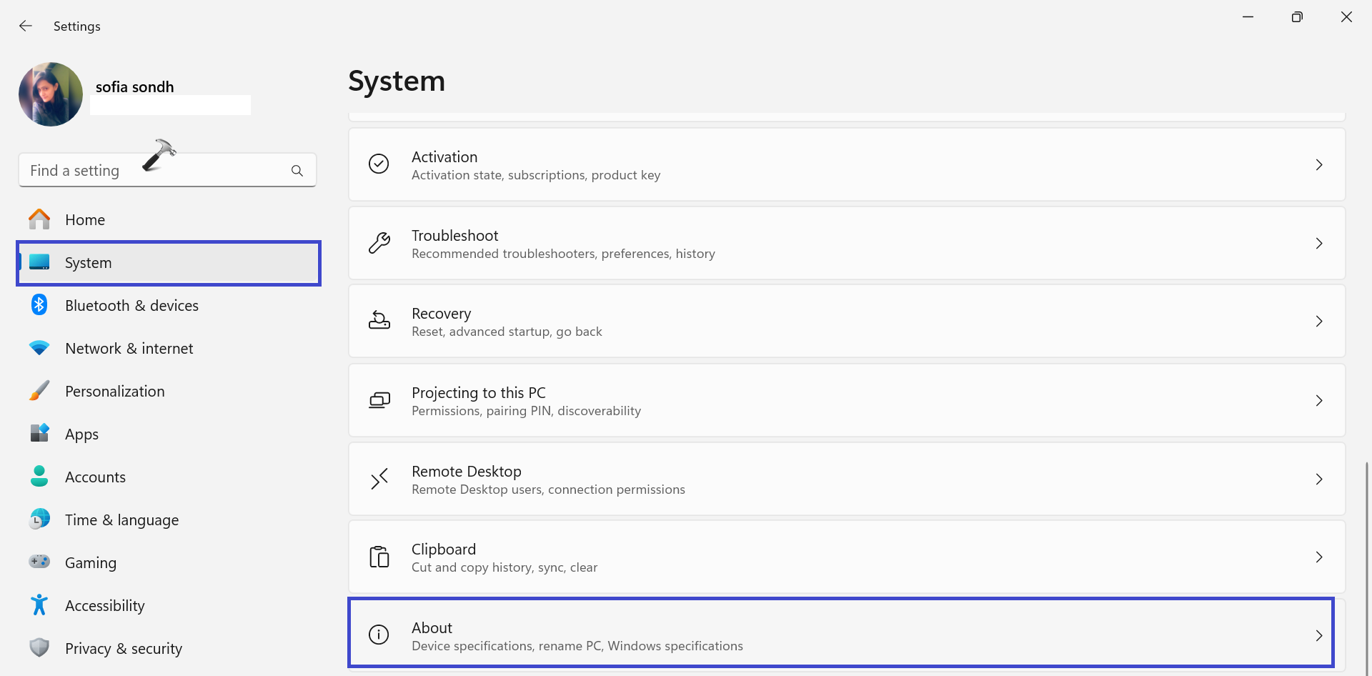 1. Nyissa meg a Beállítások alkalmazást, és kattintson a “Körülbelül„.