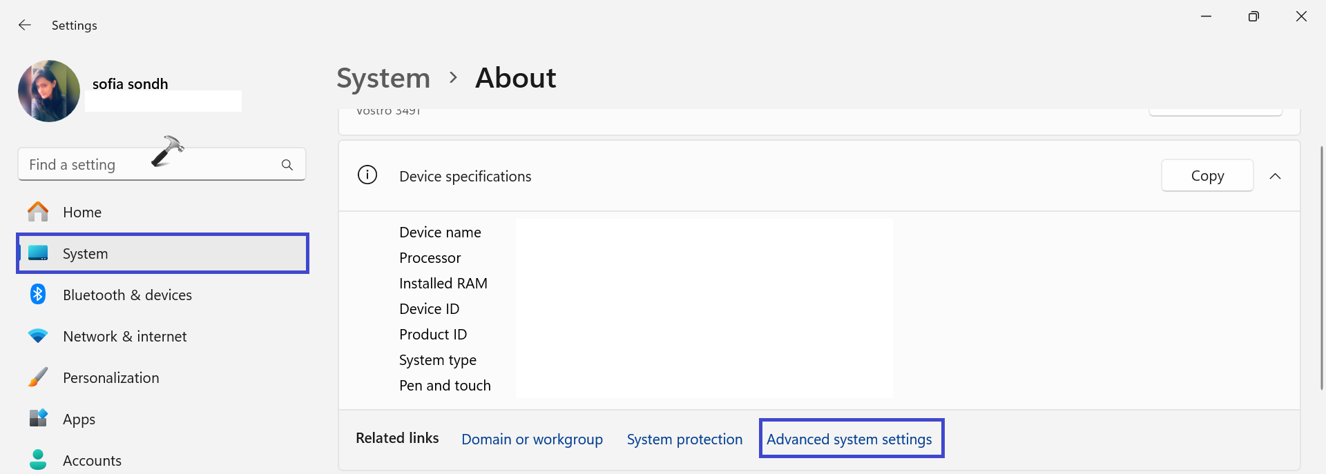 2. Most kattintson a „Speciális rendszerbeállítások”Opció.