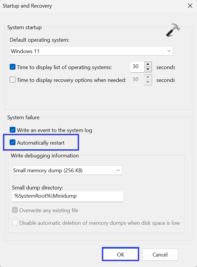 Az Automatic Restart egy olyan szolgáltatás, amely a rendszer meghibásodása után automatikusan újraindítja a számítógépet. Ez a szolgáltatás alapértelmezés szerint engedélyezve van a Windows 11 -ben.