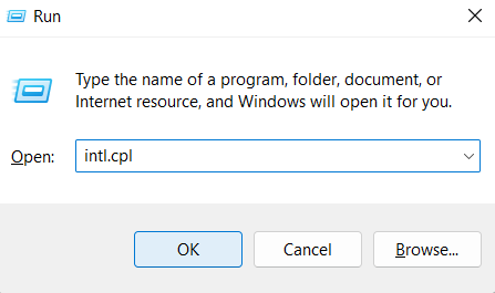 1 - Nyomja megWIN + RKulcsok a nyitott futáshoz. Beírintl.cplOtt, és kattintsonRENDBEN-