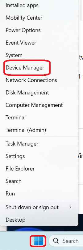 1. Kattintson a jobb gombbal a Windowsra, és válassza az „Eszközkezelő” lehetőséget.