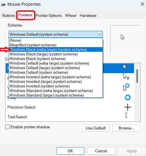 5. Válassza a „Windows Default (extra-large)” lehetőséget.