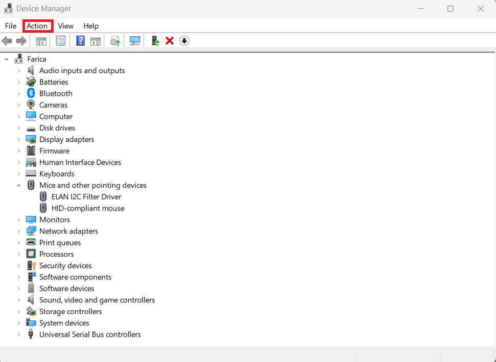 4. Ezután érintse meg a „Művelet” fület, és válassza a „Hardvermódosítások keresése” lehetőséget.