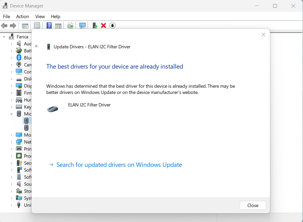 1. javítás: Telepítse újra az érintőpad illesztőprogramjait a Windows 11 kétujjas görgetésének javításához
