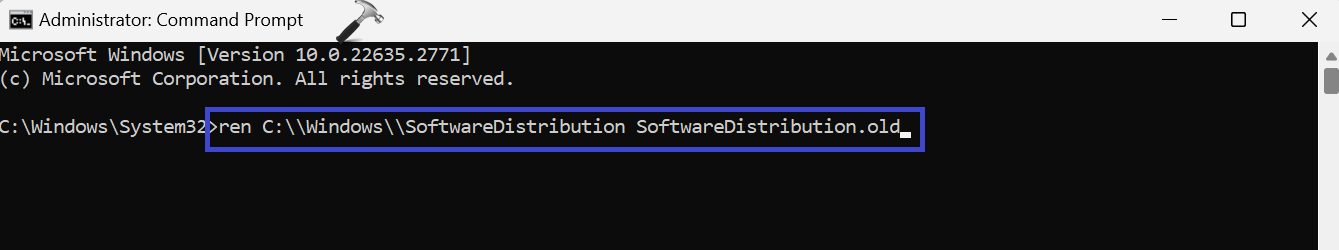 ren C:\Windows\SoftwareDistribution SoftwareDistribution.old