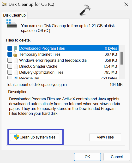 2. Most kattintson a „Tisztítsa meg a rendszerfájlokat” opciót.