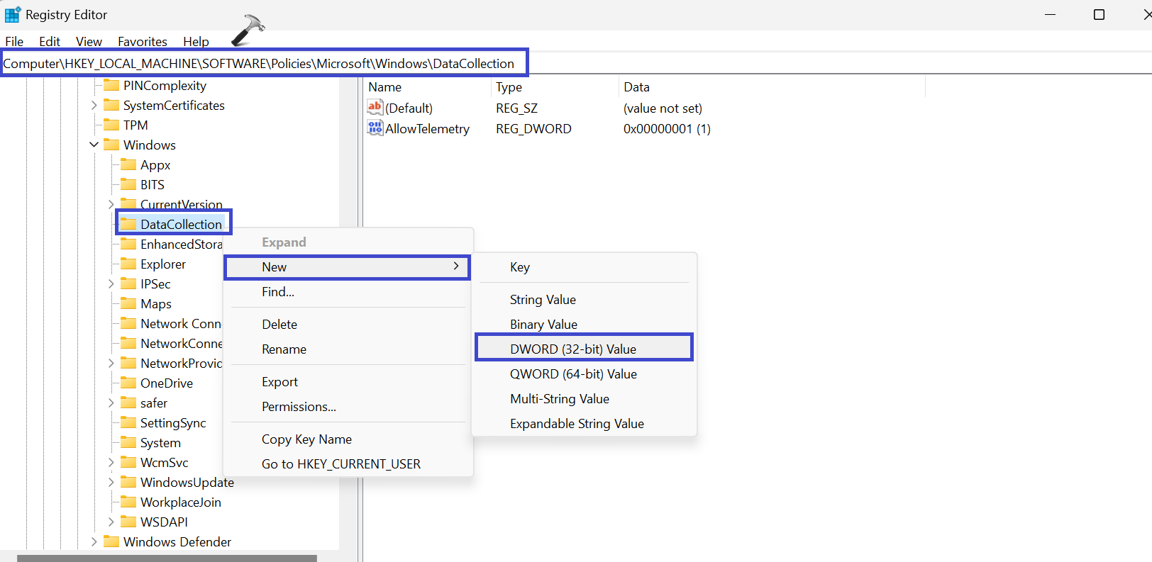 HKEY_LOCAL_MACHINESOFTWAREPoliciesMicrosoftWindowsDataCollection