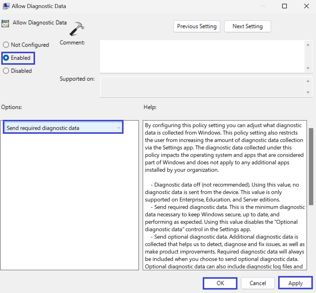 3. Most kattintson duplán a “Engedélyezze a diagnosztikai adatokat”Beállítás.