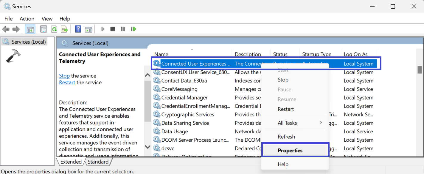 2. Kattintson duplán a „Csatlakozott felhasználói élmény és telemetria”Szolgáltatás.