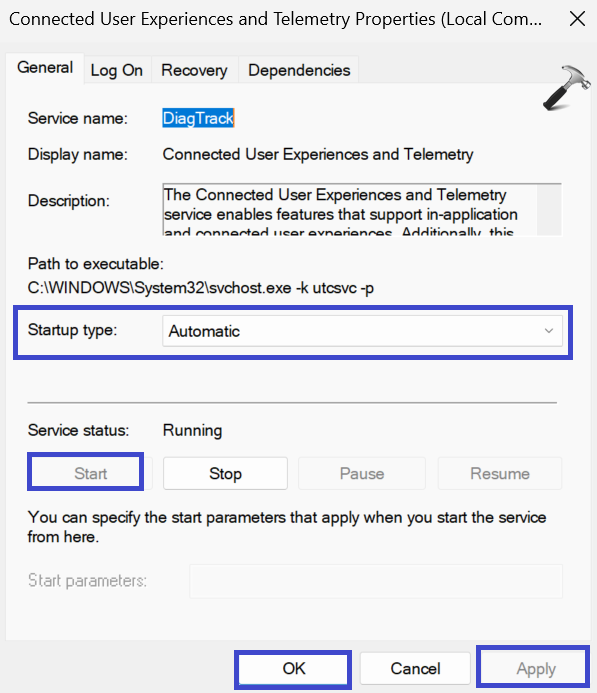 3. Az indítási típus alatt válassza a “Automatikus„.