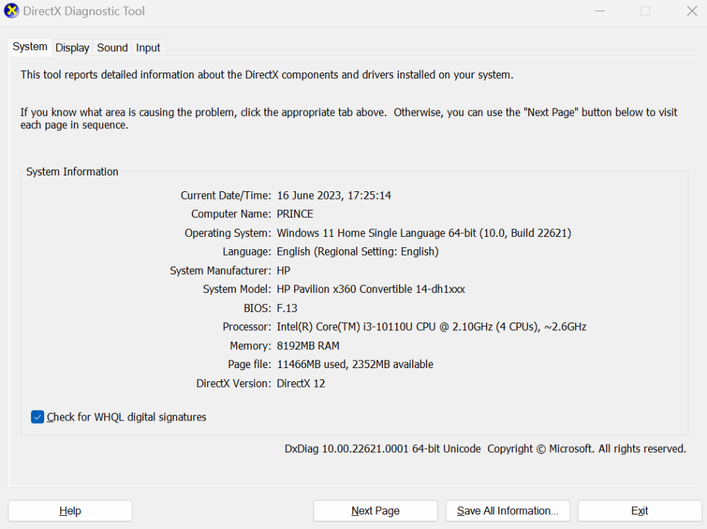 2. lépés:BeírDxdiagÉs megütötte aBeírgomb.