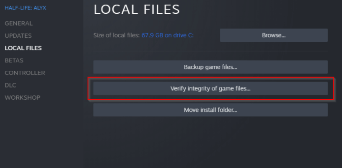 3. lépés:VálasszonHelyi fájlokA bal oldali menüből, majd válasszonEllenőrizze a játékfájlok integritását-