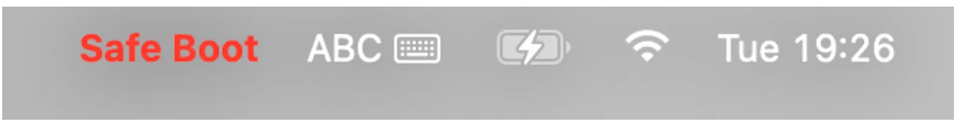 4. lépés:Keresse meg a „Safe Boot” feliratot a képernyő jobb felső sarkában található menüsorban. Ez megerősíti, hogy csökkentett módban van.