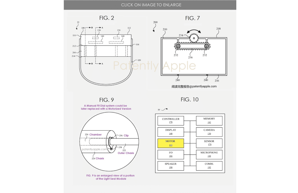 Az Egyesült Államok Szabadalmi és Védjegy Hivatala új szabadalmat adott az Apple -nek, amely leírja a motorizált rendszert az Apple Vision Pro fénytábla beállításához a különböző felhasználókhoz.