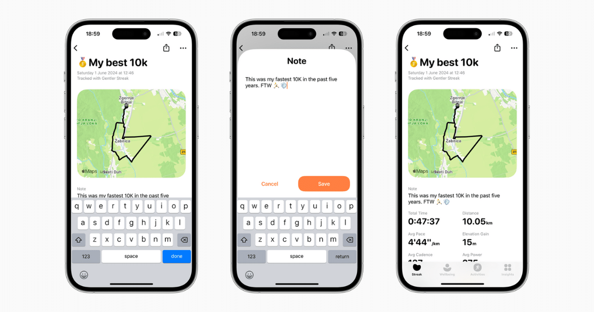 A Genter Streak legújabb verziója jelentős frissítést mutat be az edzés összefoglaló funkciójára. A felhasználók most átnevezhetik az edzéstípusokat, és személyre szabott jegyzeteket adhatnak hozzá. Például egy „kültéri futás” átnevezhető az „Első Zóna 2 Run” -ra, olyan jegyzetekkel, mint például az élelmiszer -bevitel, a menstruációs ciklusfázis vagy a környezeti feltételek, például az allergia. Ez a testreszabás lehetővé teszi a felhasználók számára, hogy mélyebb betekintést nyerjenek arról, hogy a különféle tényezők hogyan befolyásolják teljesítményüket.