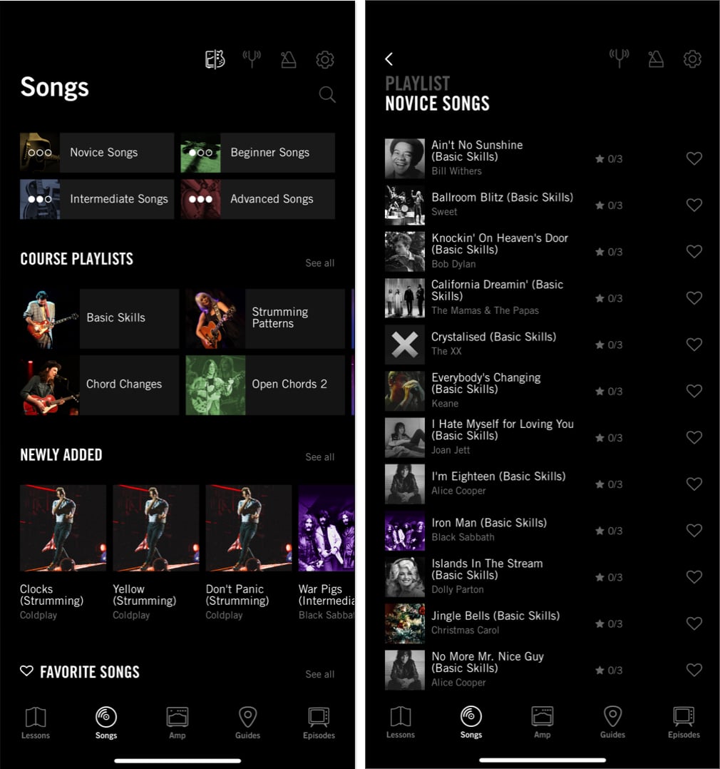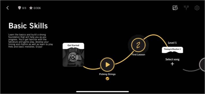 Az alkalmazás mindent tartalmaz, amire szüksége van a gitár lejátszásához, és elképesztő, hogy a tartalmát a készségkészlet alapján szervezi. Nincsenek trükkök, és öröm lesz mindenkinek, aki gitár rajongója.