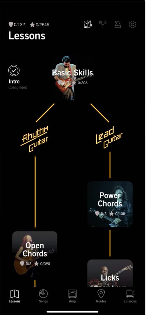 A leckéket az alapján rendezik, hogy milyen gitárosnak akar lenni, azaz ritmus vagy vezető gitáros. Miután kiválasztotta a választott tanulságokat, látni fogja az utat.