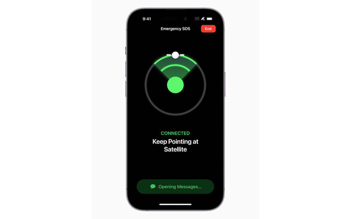 Az új sürgősségi SOS műholdas képességek révén, amely az iPhone 14 sorozatban elérhető, összeköti a felhasználókat a sürgősségi szolgáltatókkal, akik rossz Wi-Fi és Cellular Networks területeken vannak. Ha az iPhone 14 -et az ég felé mutatják, a felhasználók kapcsolatot tartanak fenn egy műholdas kapcsolatba, és üzenetükkel vagy az Apple Relay Centers által tett hívásokon keresztül küldték el a helyzetük részleteit sürgősségi szolgálatra.