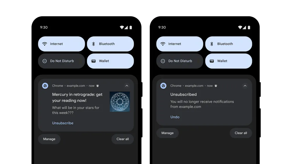 A Google a webhely elköteleződési pontszámait és az értesítések gyakoriságát használja annak megállapítására, hogy a felhasználóknak megjelenő értesítések esetleg nemkívánatosak-e.