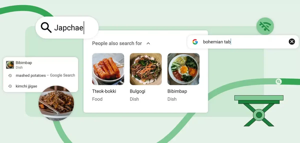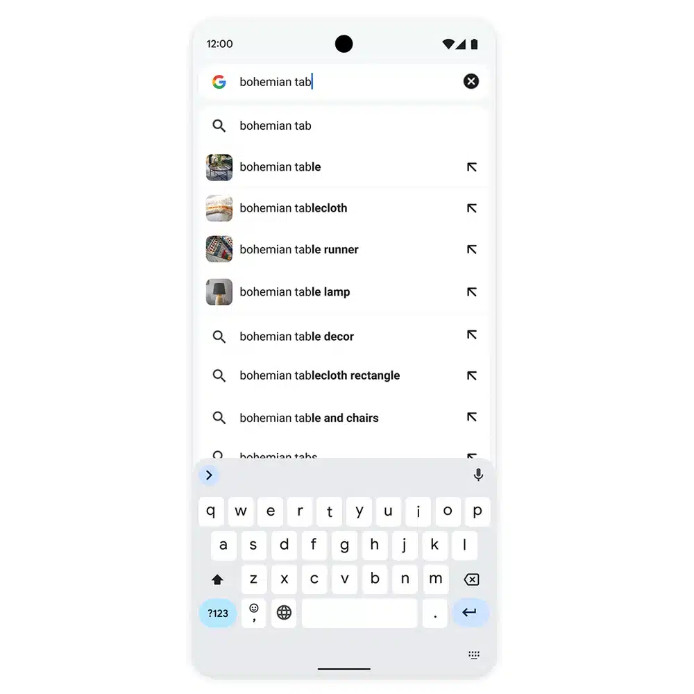 Korábban a Google Chrome csak bizonyos termékek képeit jelenítette meg a címsávban, amikor beírt egy keresési kifejezést. Android- és iOS-eszközökön azonban a Chrome ezt a funkciót szélesebb körű keresési kifejezésekre is kiterjeszti. Ha például a „bohém asztal” szót írja be, ahelyett, hogy konkrét terméknévre lenne szüksége, a Chrome számos, tetszetős lehetőséget kínál a bohém stílusú asztalokhoz, amelyek új ötleteket adhatnak a kereséshez.