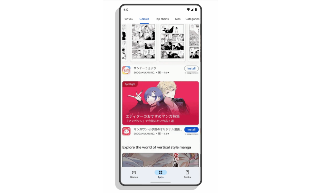 Például egy krikett-központú kurátus hely lesz elérhető az indiai felhasználók számára, hogy felfedezzék a krikettekkel kapcsolatos tartalmakat a vonatkozó alkalmazásokból. Hasonlóképpen, a japán felhasználók hozzáférhetnek a képregényekkel kapcsolatos tartalomhoz (élő események, ingyenes manga fejezet előnézetei stb.) A képregények kurátus tereiben.