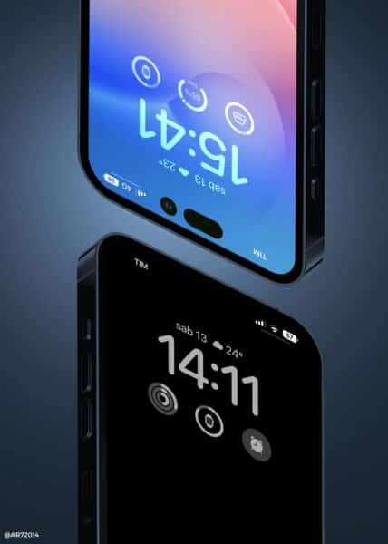 A koncepció, amelyet létrehozottGrafikus AR7, megmutatja nekünk, hogy az Midnight iPhone 14 Pro vagy az iPhone 14 Pro Max hogyan nézhet ki úgy, mint az Apple következő generációs szoftverfrissítésének-iOS 16-nak.