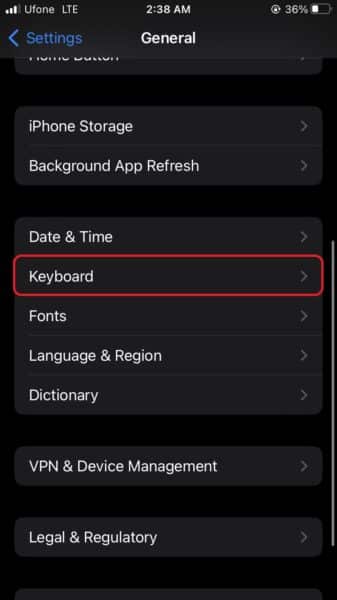 - AÁltalánosmenüből válassza kiBillentyűzet.