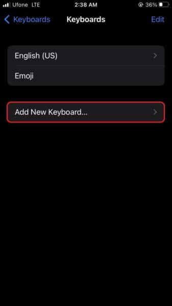 - Itt láthatja az iPhone-on jelenleg engedélyezett billentyűzetek listáját. Ha új nyelvet szeretne hozzáadni a billentyűzethez, érintse meg a gombotÚj billentyűzet hozzáadása.